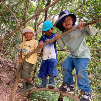 ●Book: "Brown Bear, Brown Bear, What Can You See" カラフルな動物達がリレーのように登場するお話。「ちゃいろのくまさん、ちゃいろのくまさん、なにみてるの?」「ぼくをみてる あかいとりをみてるの」繰り返されるフレーズが子どもたちを引き寄せます。AKGでも色々な動物や自然をこのフレーズを使いながら探してみましょう。