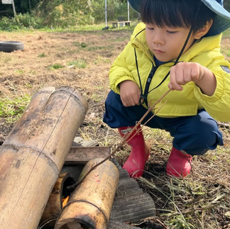 穴を掘るお友だち、セメントを混ぜる役割、水を入れる係… 周りで応援する子も