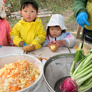 家ではおままごとが大好き♪でも実際に料理するのは初めて。Ellaと一緒に皮むきをしたり、包丁を使って料理したり。真剣な表情。
